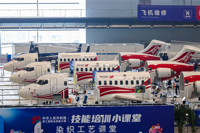 平台以国产 C909 客机为原型,覆盖 “机械电气技能、金属结构修理、复合材料修理、航空电子设备维修、系统检测调试” 五大竞赛模块,核心创新亮点突出:采用 “三段式独立舱段” 结构,可单独部署或组合使用,适配不同场地与专项训练需求;依托 “虚实结合、软硬联动” 技术,学员操作实物部件时,虚拟系统同步显示内部结构与工作状态,提升实训直观性;配备教员管理与 AI 智能评分系统,可设置训练任务、注入故障点,实时记录操作与排查逻辑并自动生成训练报告,既能满足职业院校日常教学、企业员工培训需求,又能匹配国际赛事 “高标准、高精准度” 的考核要求。现在飞机维修整机综合实训平台取得国赛专家与世赛技术委员会高度认可,将继续服务于 2026 年第 48 届世界技能大赛,助力中国职教理念与技术方案 “走出去”。